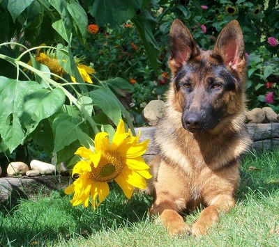 She is a sweet natured dog who loves children of all ages. Almandine is also confident dog who does outstanding Schutzhund protection work.