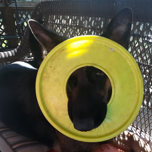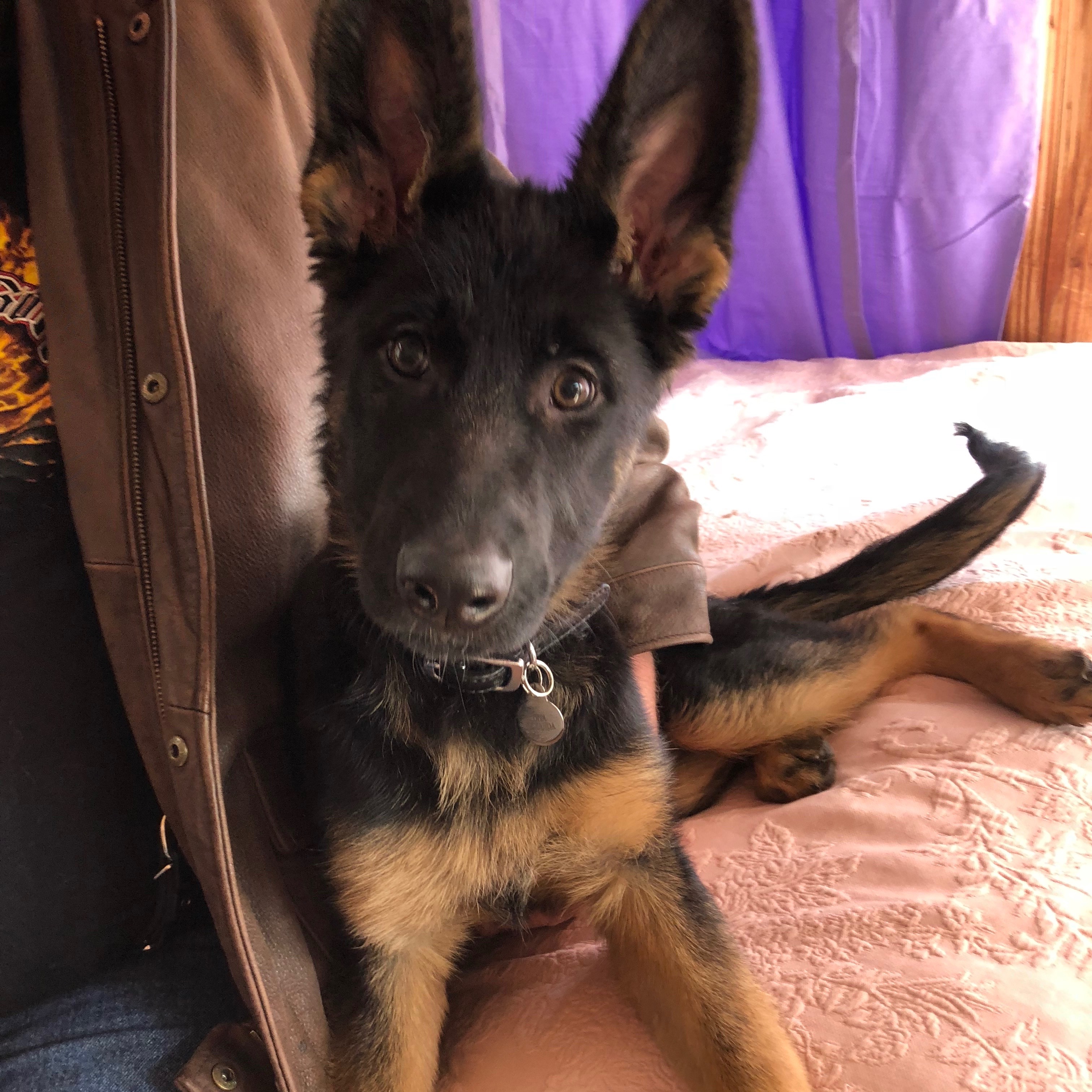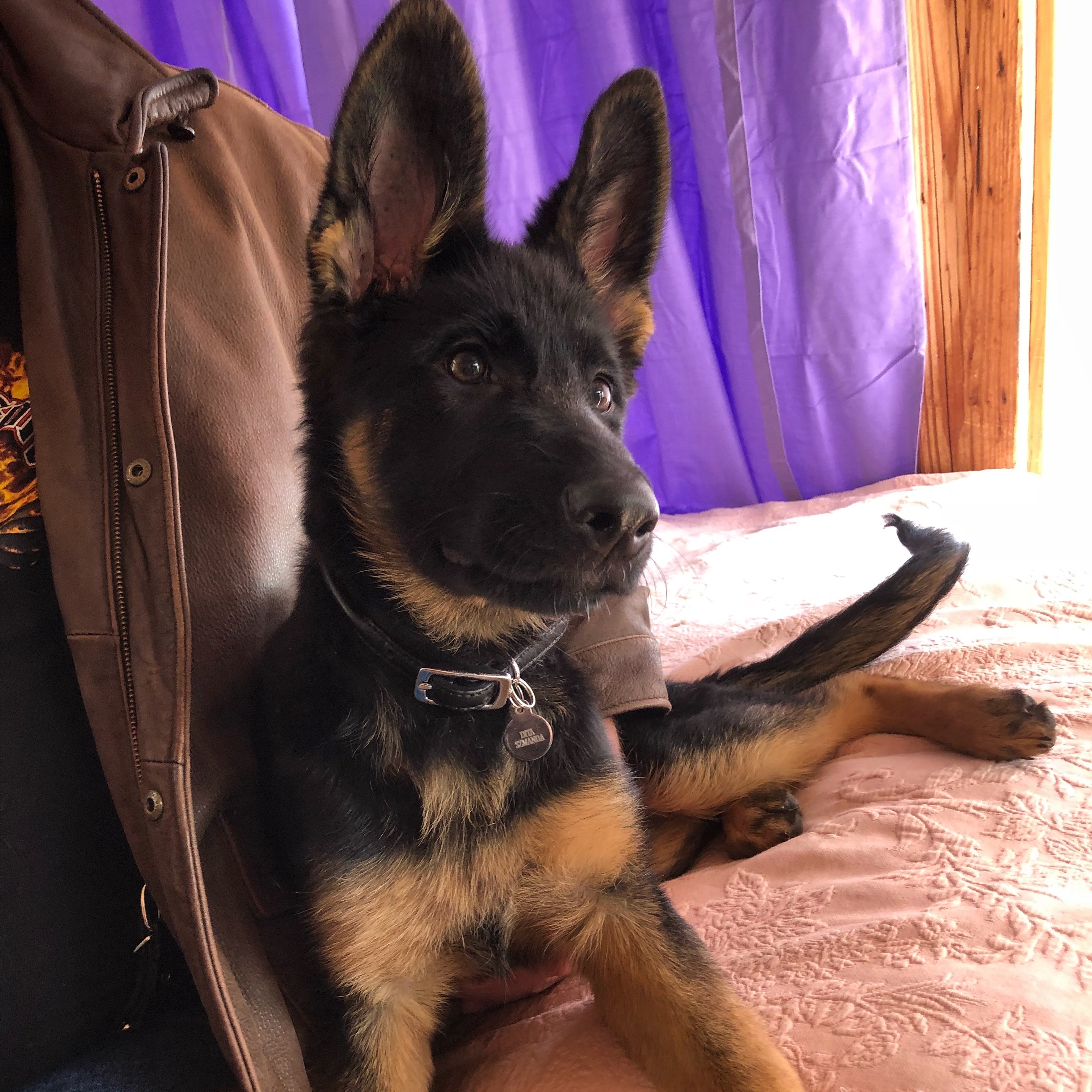 Beretta Von der Stadtrand’s call name is “Hope.” Beretta is a medium sized rich black and red female. Beretta has rich color and pigmentation, a dark mask and dark eyes.