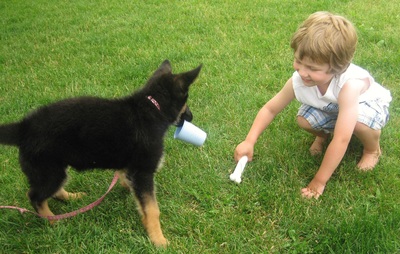 She has a wonderful temperament and enjoys playing with children of any age. Carmela has strong nerves and does exceptional Schutzhund protection work.