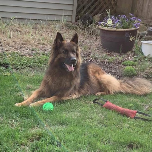 Isen loves the company of adults and children of all ages. He loves frisee and his Kong rope ball. He also loves tracking and schutzhund protection work. Isen enjoys doing things with his family and is the perfect dog on walks. Isen loves to sit on his favorite couch and watch the street from his window and in the evenings he loves to take a late day nap on his couch.