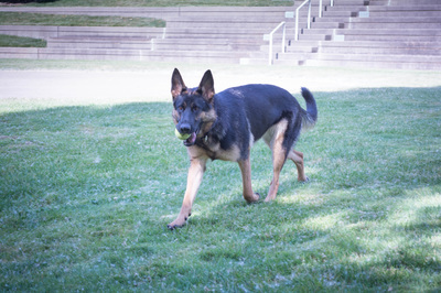 Similar to her brother Ludwig, Lilly is a social, affectionate, and loving dog that enjoys being around children. In addition to her excellent temperament, she also does well at obedience, agility, tracking, and protection work. In May 2015, Lilly earned her BH (obedience title) and AD (endurance test) titles. In November 2015, Lilly earned the TR1 (tracking level 1 in Schutzhund) title.