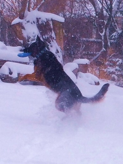 Poseidon is living with a family in Northern Illinois. Poseidon is a large robust masculine dog. His color is dark rich red. He has a dark mask with a solid black saddle. Poseidon has high withers, correct croup and a perfect top line. While moving he shows far outreaching ground covering gait.