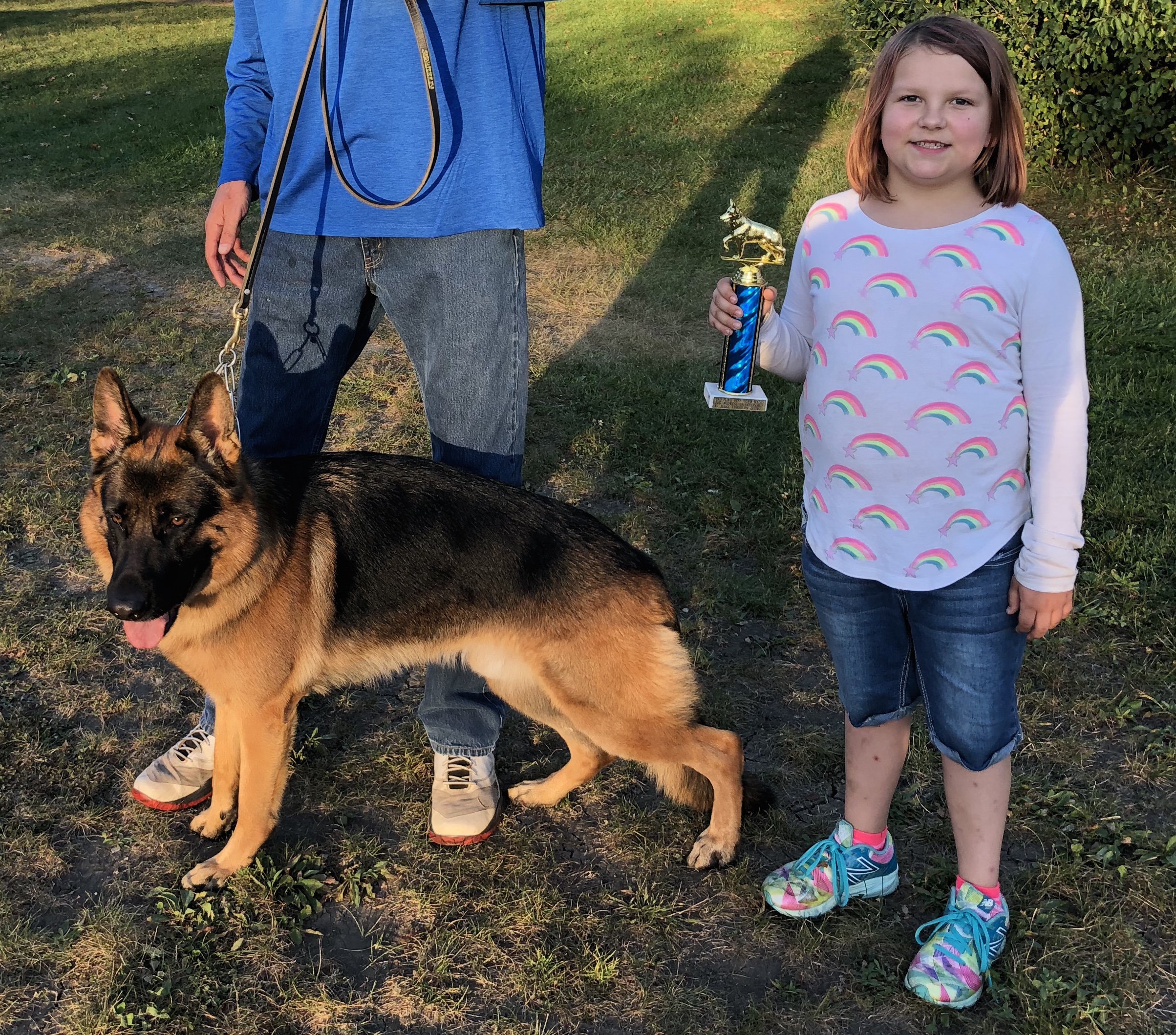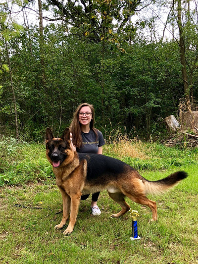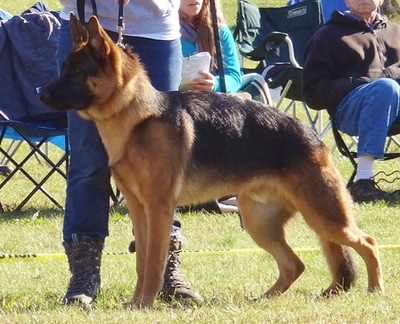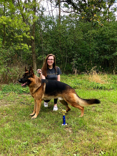 Reinhart went to the 2015 North Central Conformation Show and earned VP (Very Promising) which is the highest rating in the puppy class. Reinhart has since gone on to earn SG-2 (Very Good) at the 2017 Midwest Regional Championship. He also earned his BH and AD (endurance title) in 2017, his SP1 at Chicago Schutzhund Verein's Late Summer 2018 IPO Trial and his SP2 at Chicago Schutzhund Verein's Summer 2019 IPO Trial. Reinhart earned his TT title (GSDCA Temperament Test) in September of 2018 and most recently earned his CGC title (AKC Canine Good Citizen test) in October of 2018.