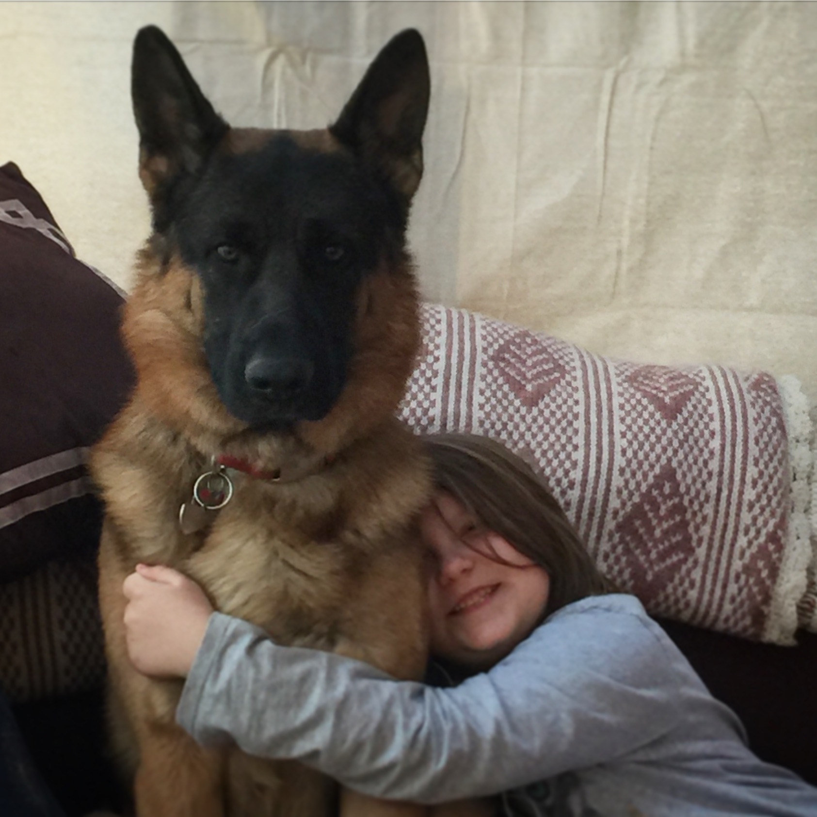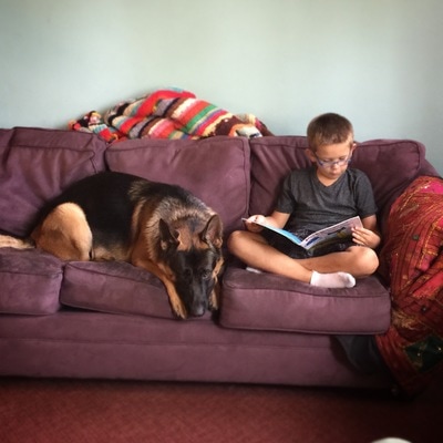 One of Reinhart’s best qualities is his temperament. He has strong nerves and is calm and relaxed in all environments both new and familiar. He loves to play with children of all ages. Reinhart enjoys running outside with the kids or snuggling up on the couch while they read to him. He knows his jobs and he does them with great pride. He is very protective of his family, especially his kids.
