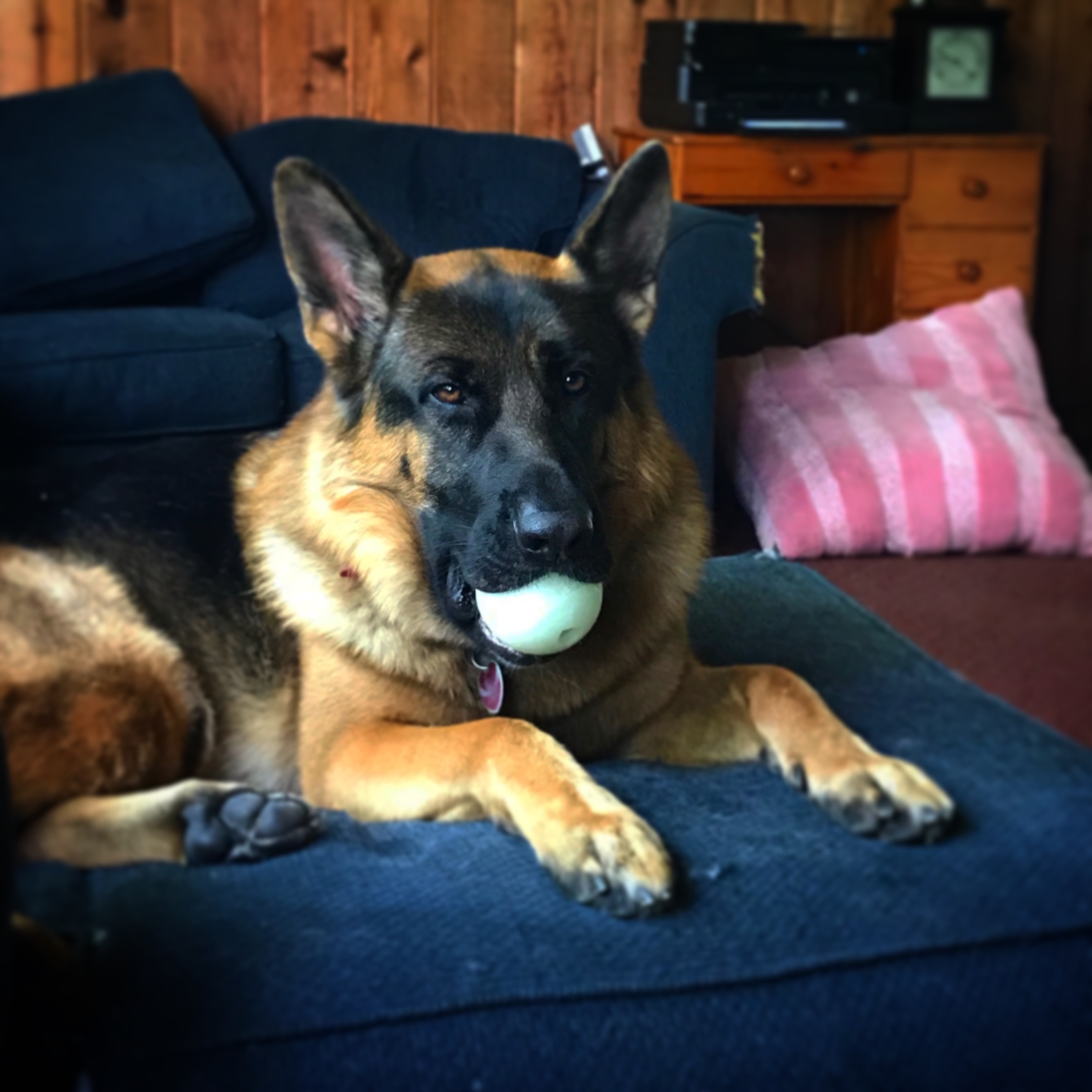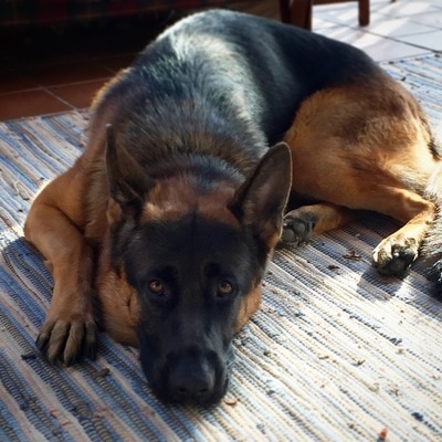 Reinhart Von der Stadtrand’s call name is “Stash”. Reinhart is a large masculine black and red dog. He has a strong robust head with a beautiful dark mask. He is a powerful dog with great bone structure.