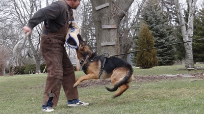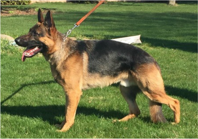 Remy has a great temperament and plays well with children of all ages! Remy is a responsive obedience dog and shows high drive and pronounced courage in Schutzhund protection training.
