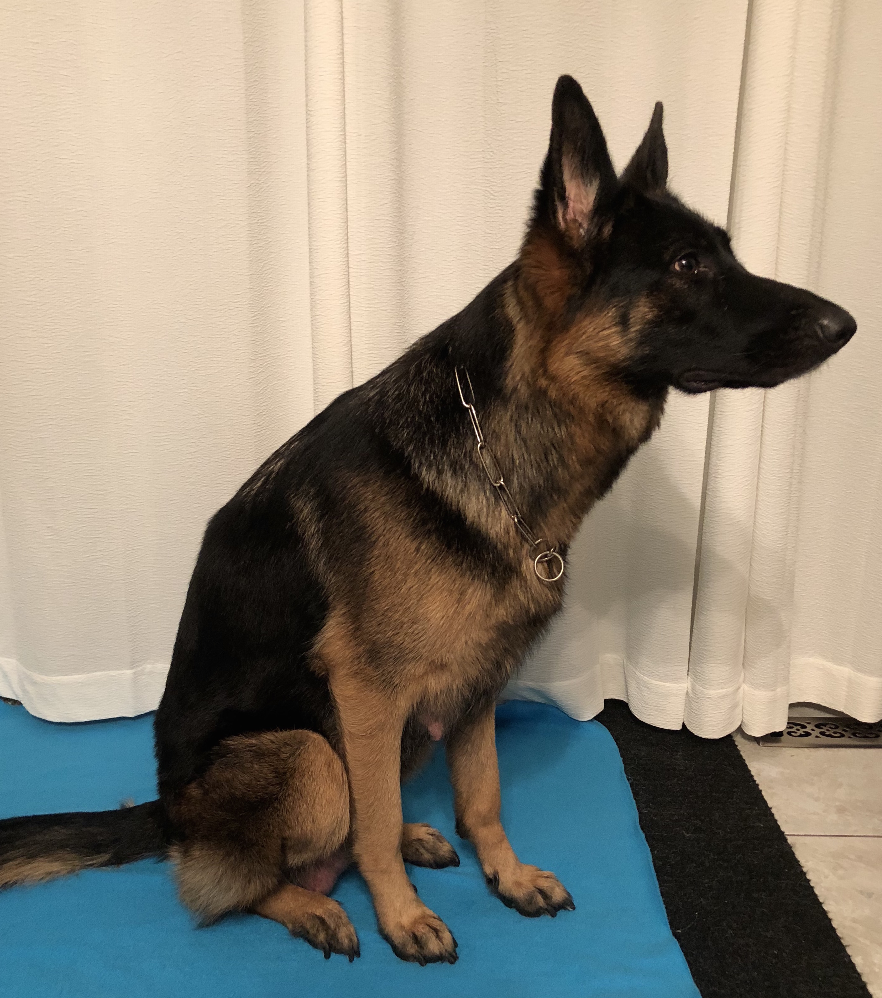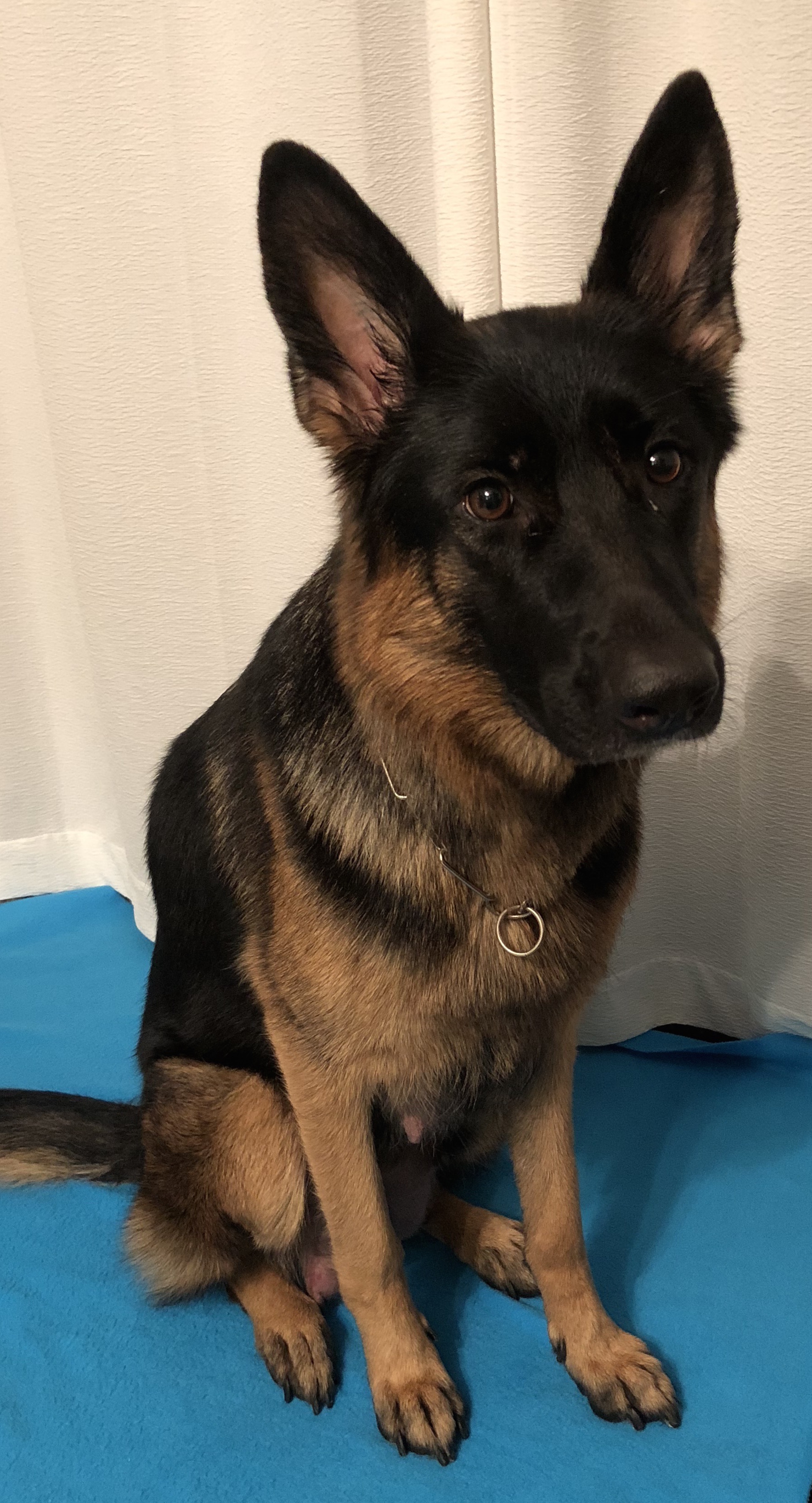 River is an over medium sized black and rich red female. She has a great expression with a dark mask.