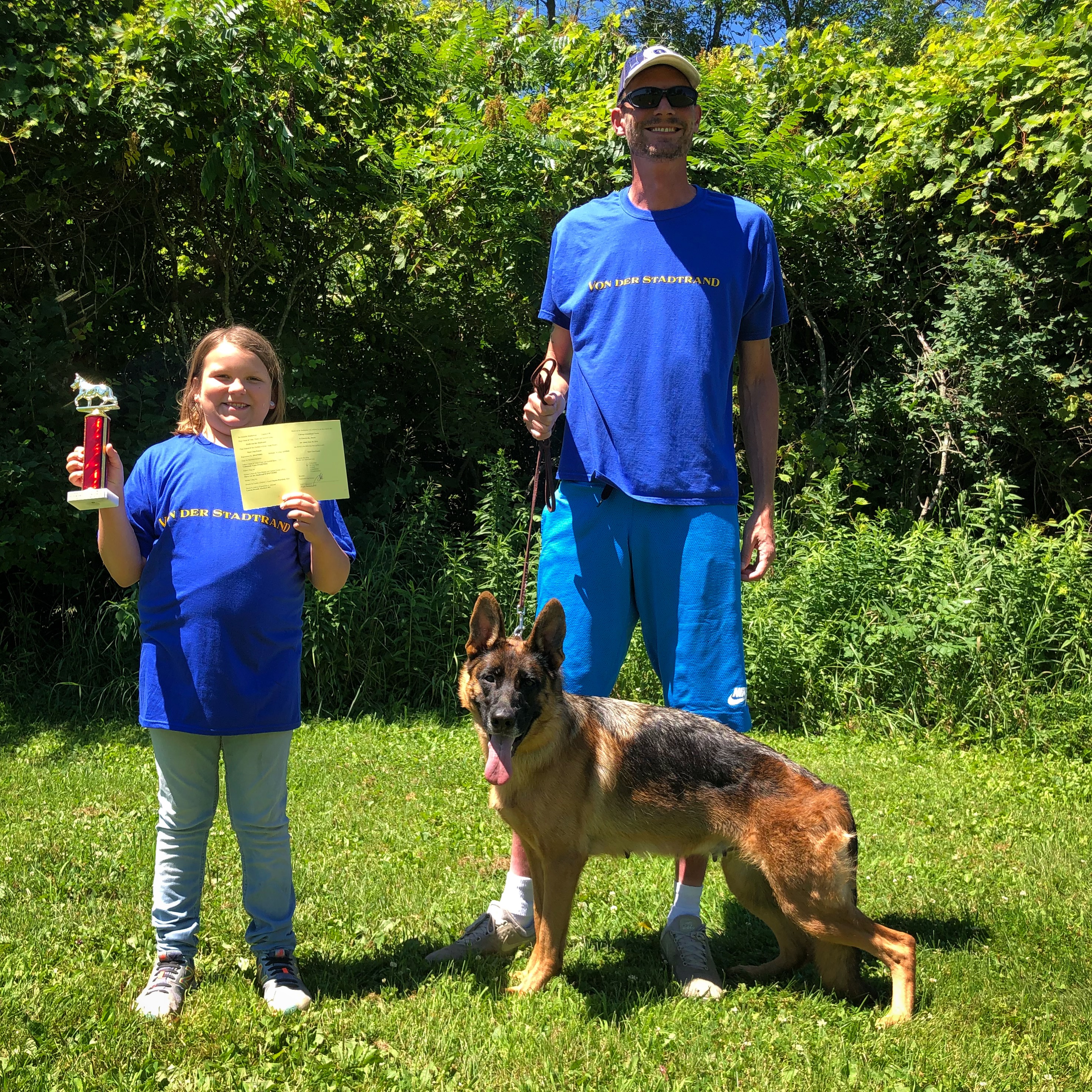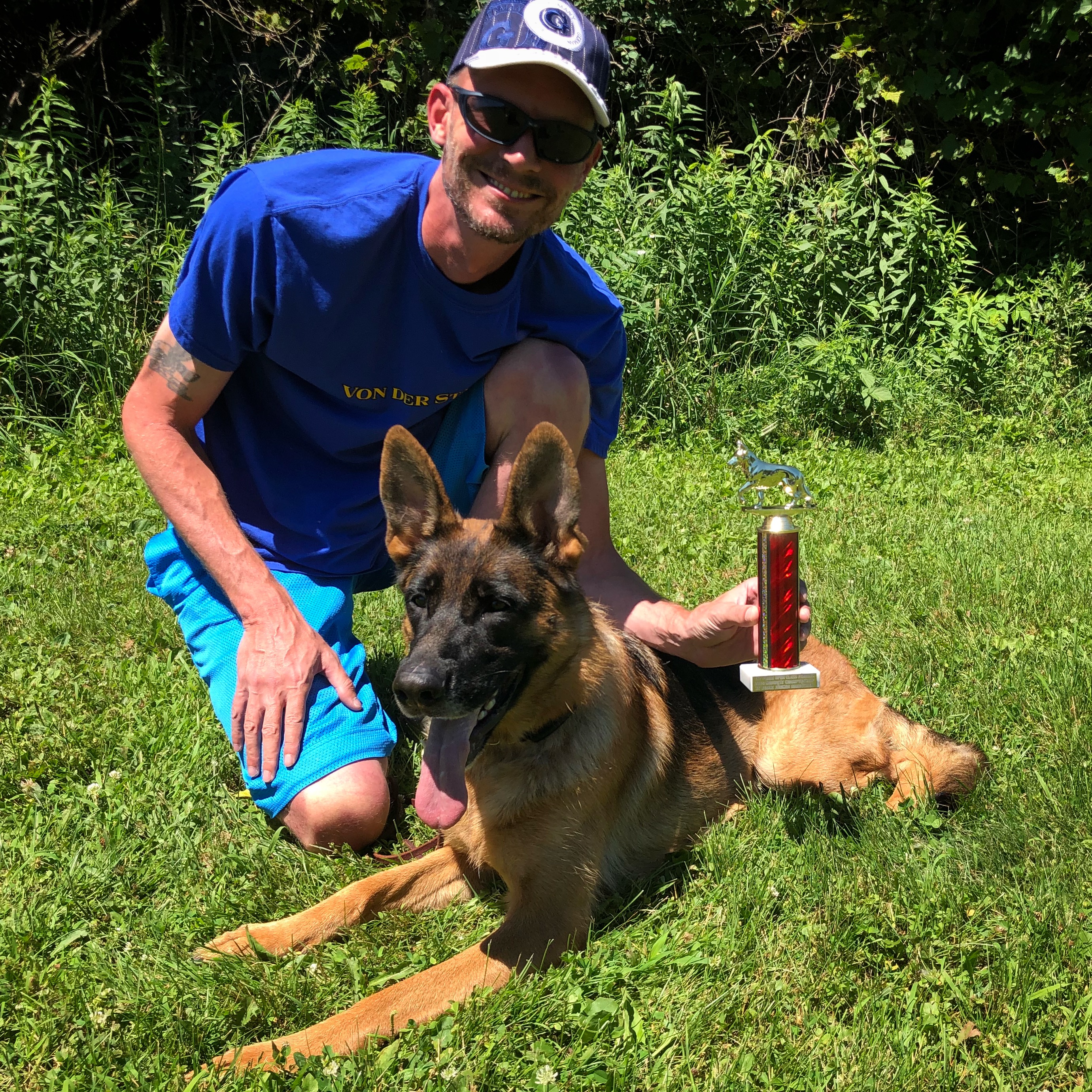 Uschi shows strong courage and excellent drive during schutzhund training. Uschi is the 2018 Midwest Regional 1st Place Champion Open Class Female.