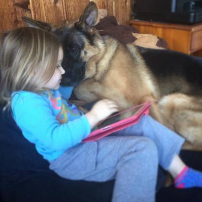 Uschi has a very sweet loving personality with a great temperament. She is good with people of all ages. Uschi adores children and is very gentle and caring towards them. One of her favorite things to do is play ball with her kids but she is equally as happy snuggling with them wherever they may be.