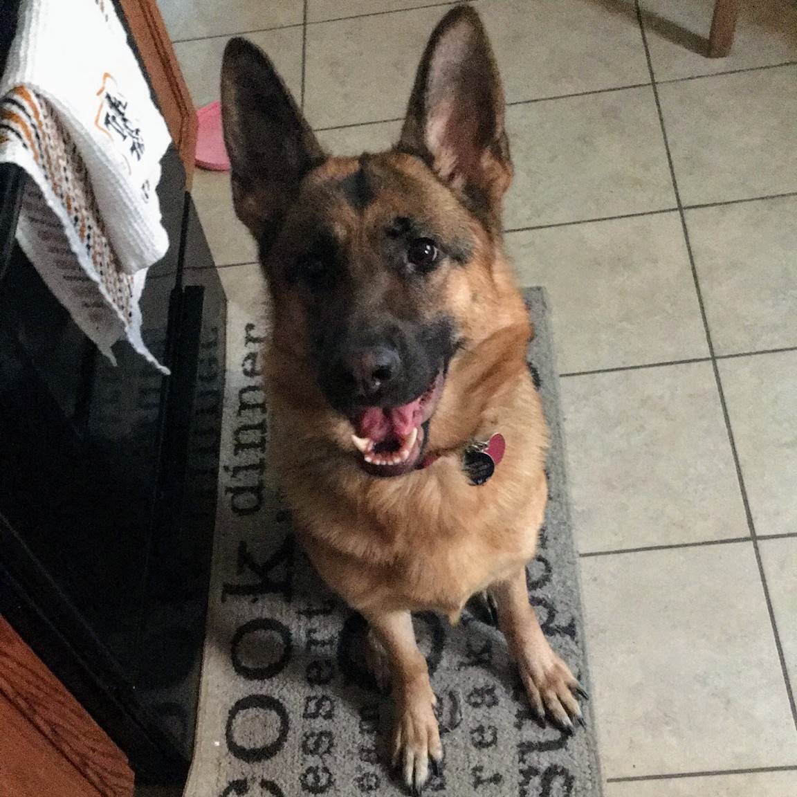 Winnie is a medium sized black and red female. Winnie has good color and good pigmentation, a dark mask and dark eyes.