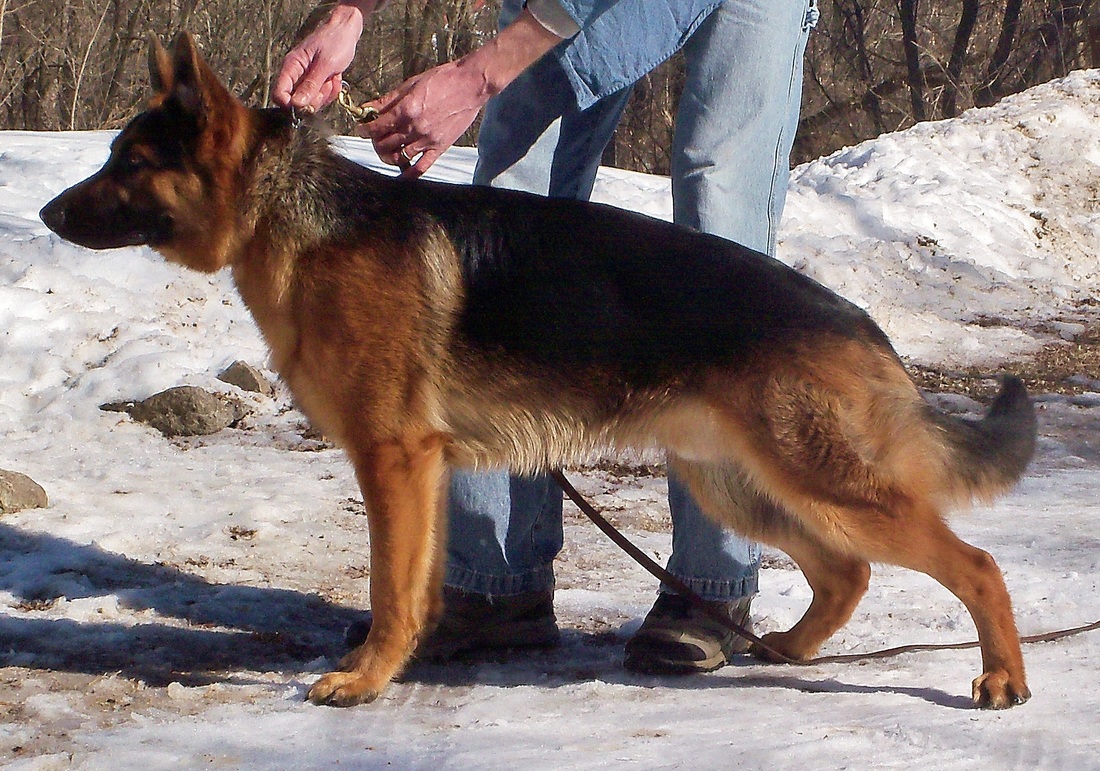 Wolverine Von der Stadtrand is a superb, medium-sized, red and black male with strong pigmentation. Wolverine is PennHip certified to be free of hip dysplasia. He is a very powerful dog with beautiful bone structure. Wolverine has pronounced withers, a strong back and a very good top line. He has balanced chest proportions, very good angulation with far out reaching ground covering front movement and a powerful rear drive! Wolverine has a fantastic temperament and plays well with children of all ages! Wolverine is an impressive obedience dog and excelled in Schutzhund protection training. Wolverine has earned his BH (Schutzhund Obedience Title).